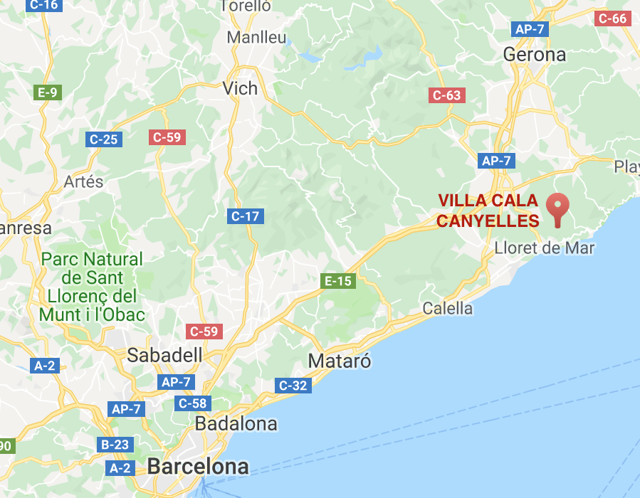 La Villa Cala Canyelles est située entre Tossa de Mar et Lloret de Mar, à 30 minutes de Gérone et à 1 heure de Barcelone.
